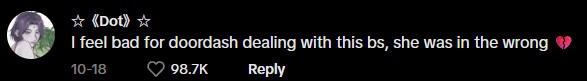 "Doordash居然要处理这种狗屎,我为他们感到难过,她才是错的那个。"