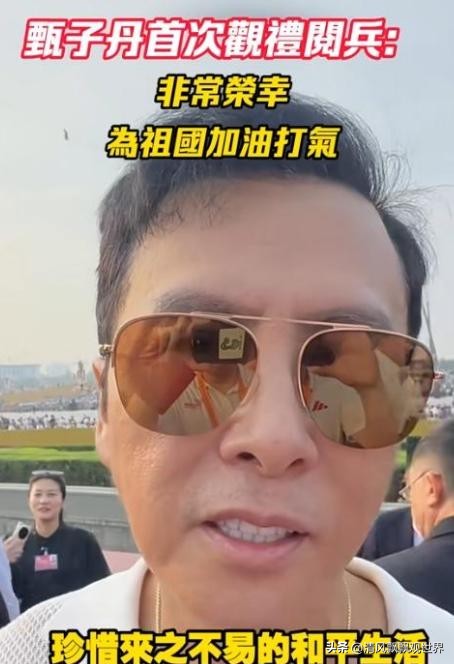 那天观礼现场有马龙、霍启刚这些体育圈名人,甄子丹在采访里说当兵很光荣。