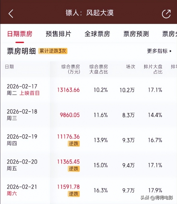 自上映第三天后,《镖人》就连续三天逆跌,跑赢预期和大盘指数,而增长的排片也昭示着这部电影正在突破瓶颈,实现反超奇迹。