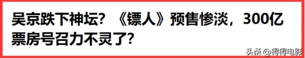 自大年初一的首映之后,虽然《镖人》首映日票房表现不佳,只排在单日第四位,媒体开始叫嚣着吴京不行了,吴京的时代过去了。