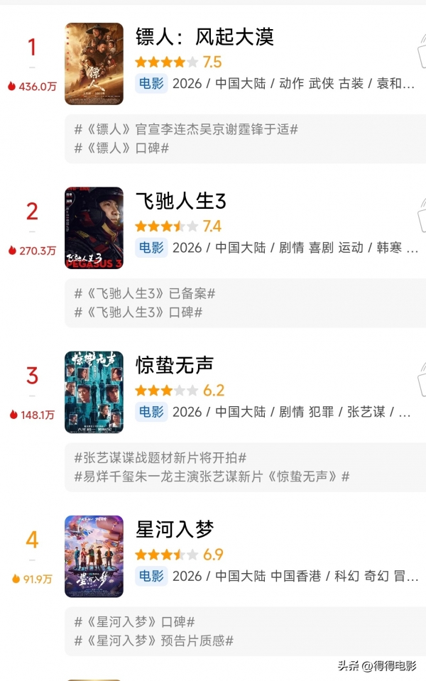 而截止到目前,《惊蛰无声》评分仍然是倒数第一,反倒是《镖人》在口碑锤炼中坚持下来,压过《飞驰人生3》一头,拿下春节档口碑第一。