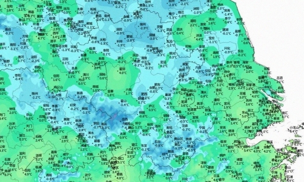长江以北的远离市区站点,武汉、合肥都跌破了0℃,上海崇明到了-1℃以下,江苏仪征逼近-3℃,清晨的车窗结霜像薄糖衣