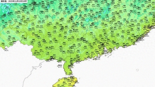 19日清晨,10度线已经压到两广沿海,南宁国家站8.6℃、北海9.7℃、深圳11.6℃、海口13.7℃,连海口的热带水果都被逼近了"生死线"