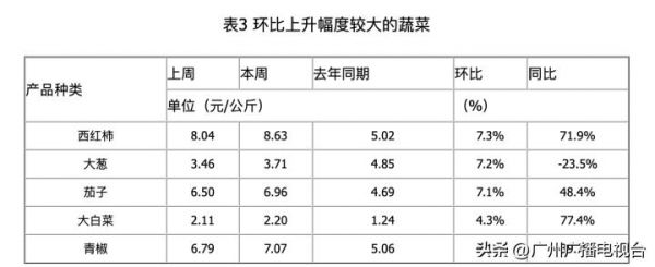 农业农村部信息中心发布的《全国农产品批发市场一周价格行情监测报告(2025年12月12日-2025年12月18日)》也显示,重点监测的19种蔬菜价格中,西红柿、大葱、茄子、大白菜和青椒的价格环比涨幅较大,幅度分别为7.3%、7.2%、7.1%、4.3%和4.1%。其中,西红柿同比增长了71.9%。