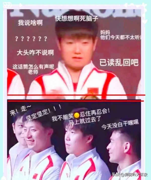 而坐在台下的马龙和樊振东,也一直面带微笑地看着"莎头组合"互动,他们两人作为中国乒乓球队的"老大哥",见证了孙颖莎和王楚钦一路走来的成长
