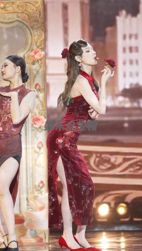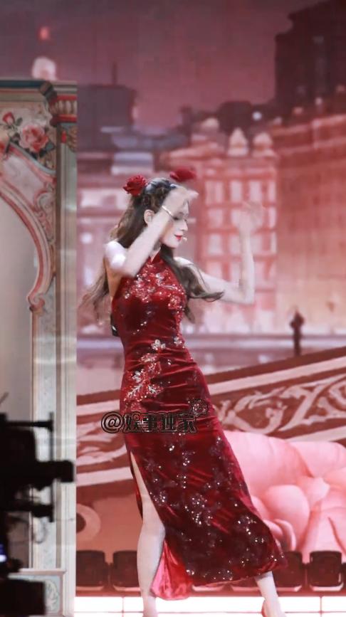 说是要体现玫瑰的艳丽,兼顾岁月沉淀与时尚感。这身穿搭本身就足够吸睛,再配上她的舞姿,直接引爆话题。