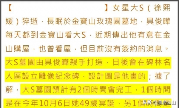 现在据说整个墓园要彻底弄完,得等到10月份大S过冥诞,或者干脆拖到明年2月她去世满一周年。