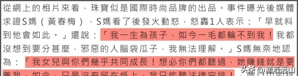 比如早前传出风声,说她偷拿了大S留下的首饰去变卖换钱,这可惹恼了小S,立马跳出来指着鼻子骂造谣的缺德。