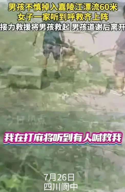 7月26日,四川阆中。住在嘉陵江岸边的张女士一家人正在打麻将,忽然从江中传来一阵阵呼救声。一家人立即停止了打麻将,向江边跑去。