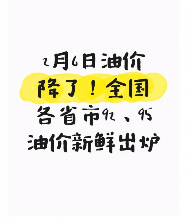各位车主朋友注意了,2月6日国内成品油价格迎来下调,开车出行的成本又能省一笔,不管是日常通勤、跑长途还是准备春节返乡,这次降价都和大家的钱袋子直接相关。今天这篇文章就用大白话,把本次油价下跌的原因、全国各省市最新92号、95号汽油零售价、车主加油省钱技巧一次性说全,内容真实可查,看完加油不花冤枉钱。