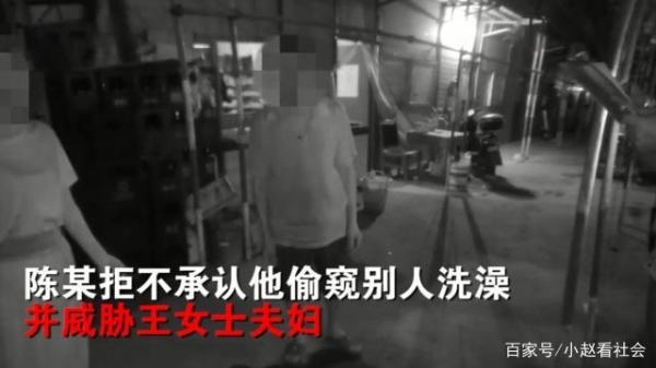 王女士和老公分头开始围堵男子,最终男子被逮到,结果大家一照面都傻眼了,原来这名男子是工地上的一名木工陈某,陈某却拒不承认偷窥王女士洗澡并威胁王女士夫妇如果报警要杀了他们之类的言语,王女士夫妇果断选择报警。