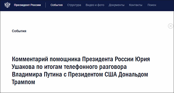 据乌沙科夫介绍,通话进行了约1小时。乌沙科夫认为,此次通话是务实、坦率、具有建设性的,"他们已经很久没有通电话了,上一次是在2025年12月底。"