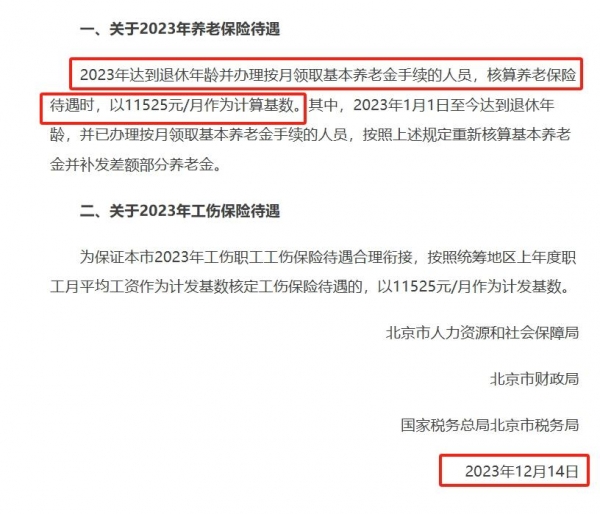 比如,北京直到去年12月才公布2023年的养老金计发基数。2024年的养老金计发基数估计也要等到年底才会公布。