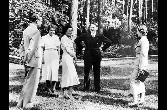 这张照片拍摄于1937年。仔细看,希特勒旁边有一团白色的不明影像,不要慌,这不是幽灵,这只是一个得罪了希特勒的纳粹宣传部部长,原图是这样的: