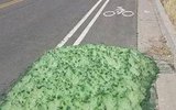 公路上惊现绿色“地衣”, 上前仔细查看后, 吓得立即报了警