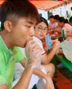 小伙子你吃的可真香,隔壁的美女看的口水都要流出来了