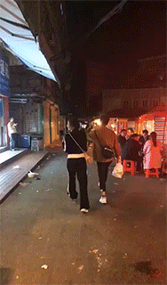 搞笑GIF: 快跑啊,日本鬼子端着枪进村啦!