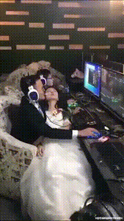 抱着新娘在网吧里打游戏,真不明白现在人的思想了!