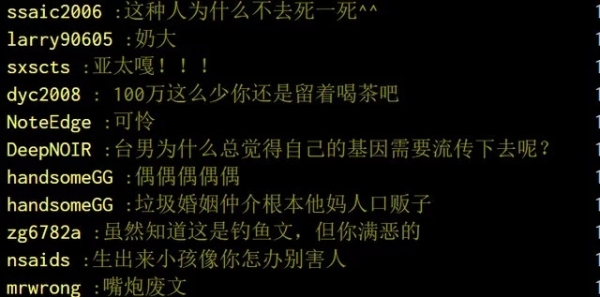 前天著名湾湾阴间论坛PTT八卦版上出了一个很让人觉得恶心的帖子:
