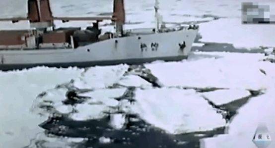 在茫茫的冰海上,面对不断涌来的浮冰,极地号只能减速航行,尽可能减小船体与冰面的撞击力度。