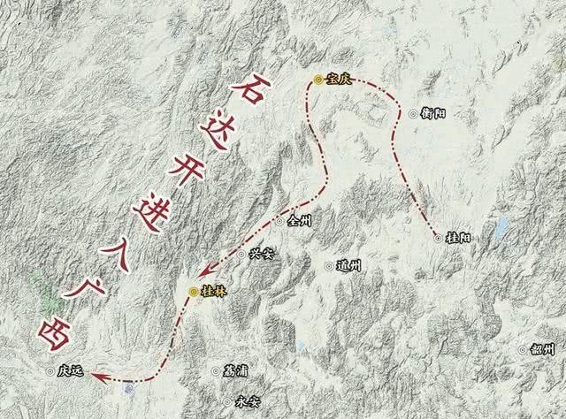 进兵四川,本来可以不打宝庆,由小道经过宝庆附近北上。退一步来说,围攻宝庆不克,被迫撤围也可以向北撒退。事实却是石达开大军从宝庆撒围后南走新宁、东安、武冈,进入广西,又围攻桂林省城。桂林围攻两个多月,打不下来,撤围攻克庆远府城。在庆远驻扎了八个月以后,又南下进攻南宁府城。离开四川愈来愈远,这真是不可理解。