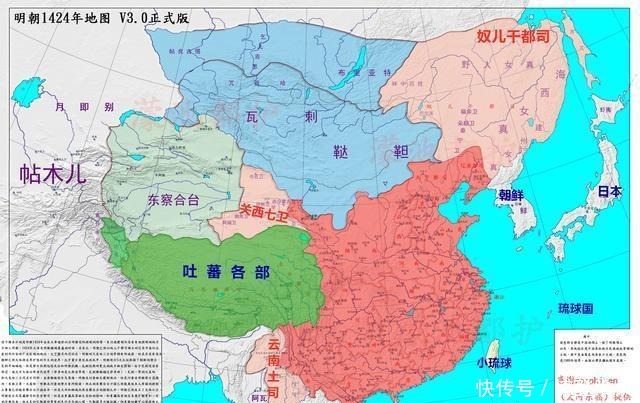 永乐时代是明朝的巅峰。这个时代,明朝在东北建立了奴儿干都司,在越南设立了交趾布政使司,并且设立了贵州省,推动了云贵高原的改土归流。这个时代,明朝的势力范围得到了扩大,西到哈密一带,南到东南亚。但是明朝始终没有对吐蕃、蒙古、西域建立统治,明朝的疆域面积这个时代大约是700万平方公里。