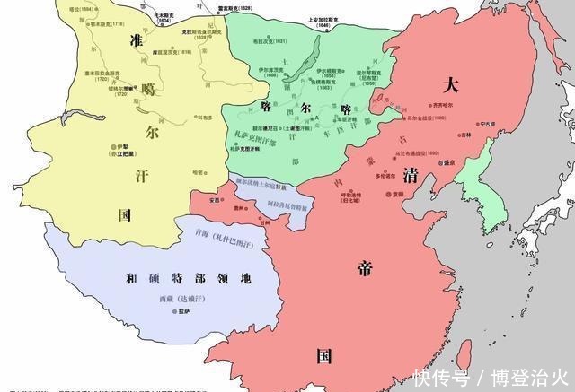 在中俄谈判时期,西北的准噶尔汗国不断东扩,占据了整个喀尔喀蒙古地区,一直打到了乌兰布通。随后,康熙三征噶尔丹,三次都取得了胜利。同时,准噶尔后方的策妄阿拉布坦独立,噶尔丹内外交困,被迫服毒自杀。此后,喀尔喀蒙古地区纳入了清朝版图。1717年,策妄派6000军队进入青藏高原,灭和硕特汗国。1720年,康熙的三路大军将准噶尔的军队赶出了青藏高原,清朝在青藏驻军,标志着西藏和青海纳入了清朝版图。 从此,清朝的疆域面积突破了1000万平方公里。