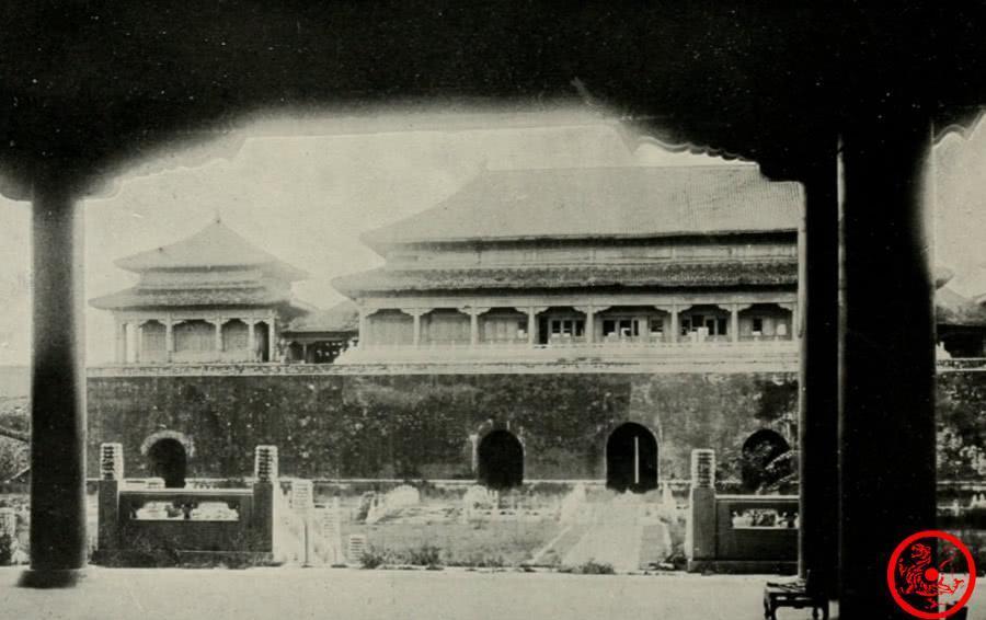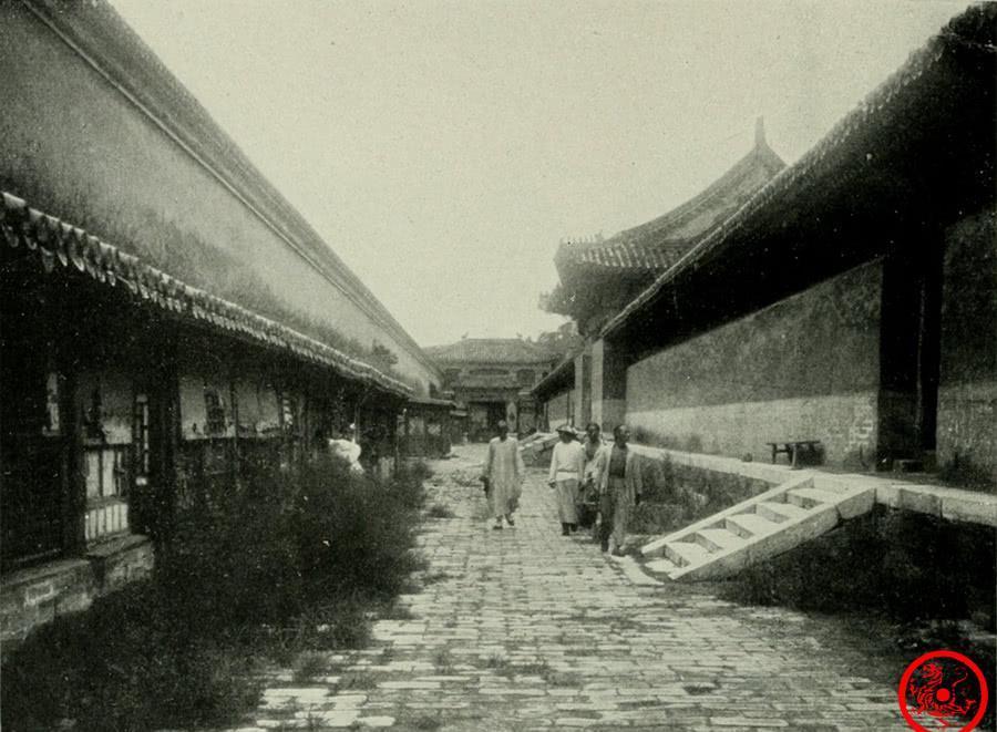 紫禁城内的道路,路边杂草丛生。紫禁城于明成祖永乐四年(1406年)开始建设,以南京朱元璋所建皇宫为蓝本,历时10多年,到永乐十八年(1420年)建成。明朝灭亡之际,李自成曾大举破坏宫内建筑。清军入关后,新的主人开始修缮及重建紫禁城建筑。