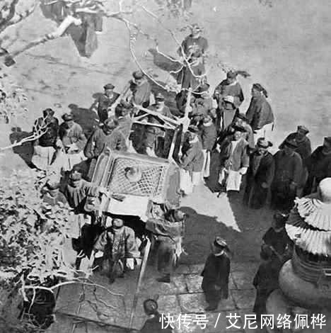 你一定奇怪这么多照片都是拍到出行的场景,怎么没有拍到皇上呢,这是因为在当时皇上是不可以被拍摄的,除非皇上自己同意,不然就是死罪。而刚巧光绪和慈禧不同,他本人一点也不喜欢拍照,所以到现在都没有留下任何照片。但是后来有学着发现,光绪在还未登基的时候似乎有过照片,就是上图马背上的这个小孩,但是真实性无从考证。