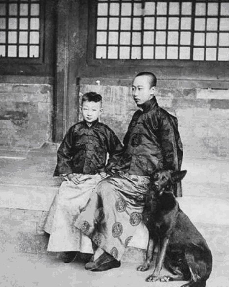 清末老照片:右边的男孩是紫禁城里的少年溥仪,左边的是溥仪的小舅子,也就是婉容的亲弟弟。