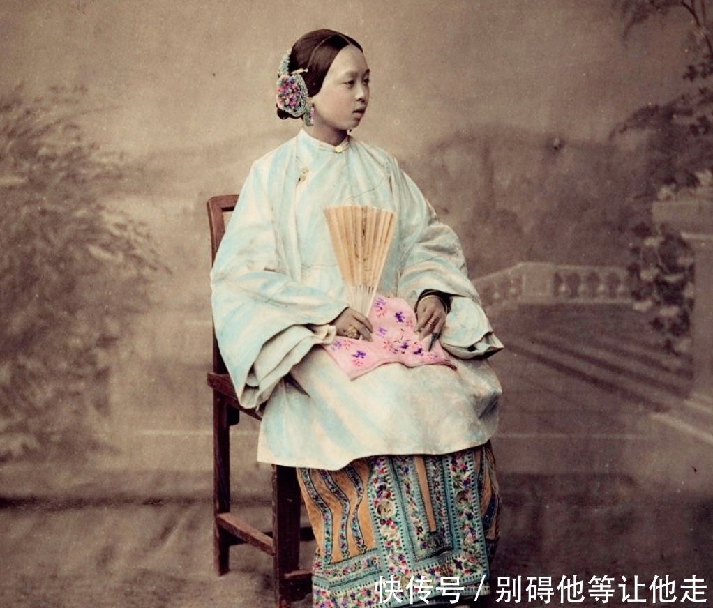 这是晚清年间青楼里的女子,女子穿着锦衣绸缎,相貌十分的美丽秀气,特别是其一双美丽的眼眸顾盼生情,端坐在椅子上虽然不言不语,却十分的端庄有气质。