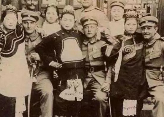真实的晚清老照片:图为八国联军攻占南京后,青楼女子与那些外国士兵的亲密合影,戏子无情在这里体现得淋淋精致。