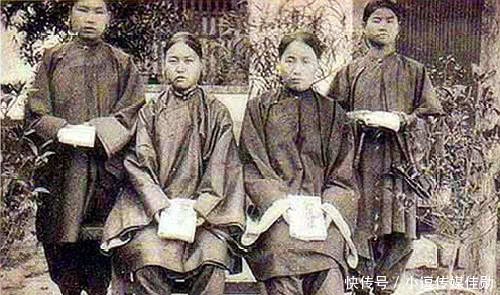图为清末时期老照片,照片中是四个妇人,她们手里拿的应该是毛巾,大家看像吗?
