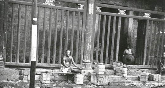 这张照片中,是晚清时期的一个挑夫。由于西方列强已经完成了工业革命,大量廉价的机器制品涌入到中国,导致了中国传统的自给自足的小农经济开始崩溃。而那些种不下去地的农民们,只好走进城里出售自己的力气。