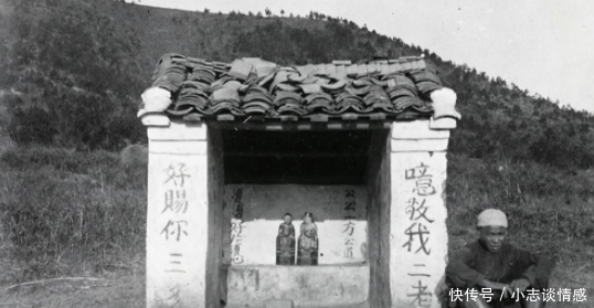这张照片中,是一个坐在土地庙旁边祈祷的农民。当时农民种地完全就是靠天收,经常性地会出现天灾人祸,导致田地收成全无。而他的眼神中,没有半点对生活的渴望。