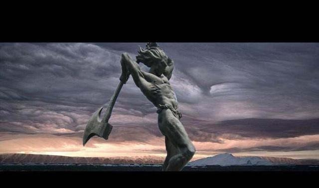 在天地玄黄,宇宙洪荒时代,天地混沌,犹如一鸡蛋,盘古昏睡其中一万八千年,某一日盘古醒来,不满如此混沌天地,便手持大斧,开天劈地,头顶天脚踩地,身长一日九变,经一万八千年努力,盘古身长九万里。因此天地间相去九万里。又一万八千年,盘古力竭气绝,其头化为东岳泰山,其身化为中岳嵩山,其双脚化作了西岳华山,而双手分别化作北岳恒山和南岳衡山。因此,盘古开天斧在上古神兵利器中排名第一,也是最巨大的兵器,除了盘古能舞动外,无人可拿得动。