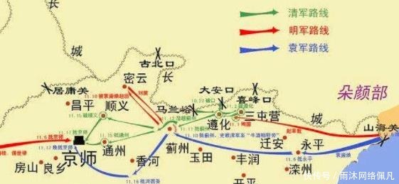 皇太极绕道进攻北京城路线图