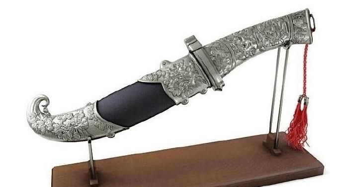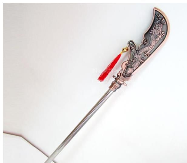 关二爷的青龙偃月刀也是榜上有名的,这把刀也被叫做"冷艳锯",是三国时期关羽的武器,取这样的名字是因为它外形修长,而且刀背上刻着青龙的图案。这把刀刀头有着回钩。又好似一把长枪,锋利无比。它和赤兔马都属于关羽,它们将关羽威武的形象映衬的淋漓尽致。