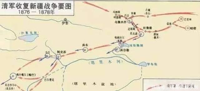 这时唯有一人站出来指责李鸿章鼠目寸光,此人就是左宗棠。他在呈上的奏折之中,说明了新疆的重要性,若失去新疆于社稷无益。在左宗棠的一再坚持之下,清朝同意出兵,但却没有经费。当时的阿古柏拥有军队5万,其中骑兵就有两万,还有1万军队配备了线膛枪。此时左宗棠虽有兵士七万,但是一无粮二无饷,后继无力。自河西运粮至乌鲁木齐距离850公里,需运费200万两,而乌鲁木齐距阿古柏的精锐所在喀什还有1800公里。
