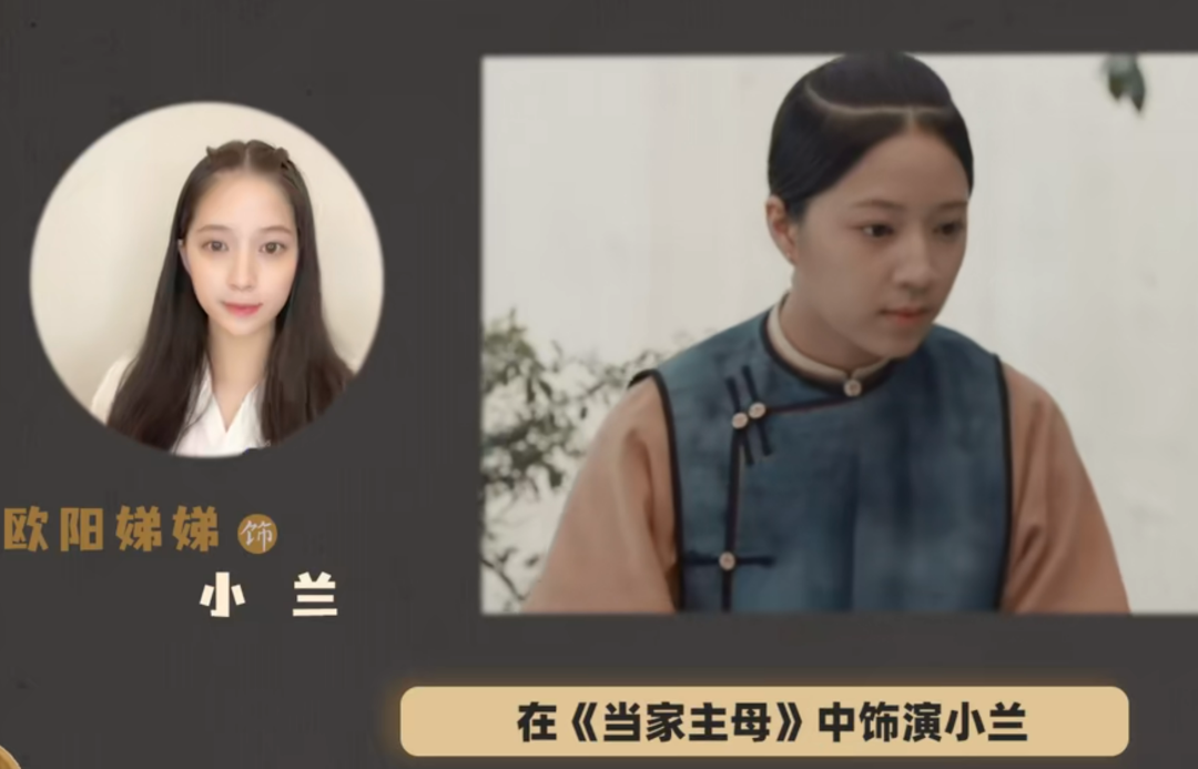 欧阳娣娣之前在于正那部《当家主母》里打过酱油,饰演蒋勤勤身边其中一位丫鬟小兰,戏份虽少,但当时也借机营销了一把。