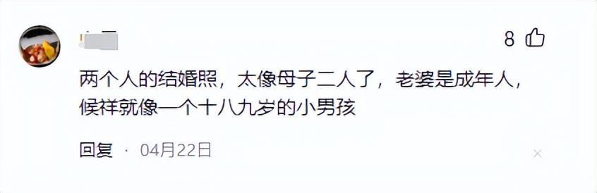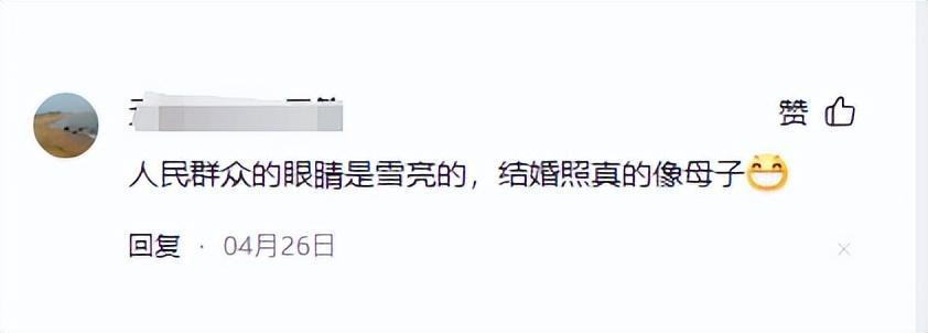 许多网友在网上纷纷留言,两人的结婚照看起来不像夫妻,反而像是一对母子。