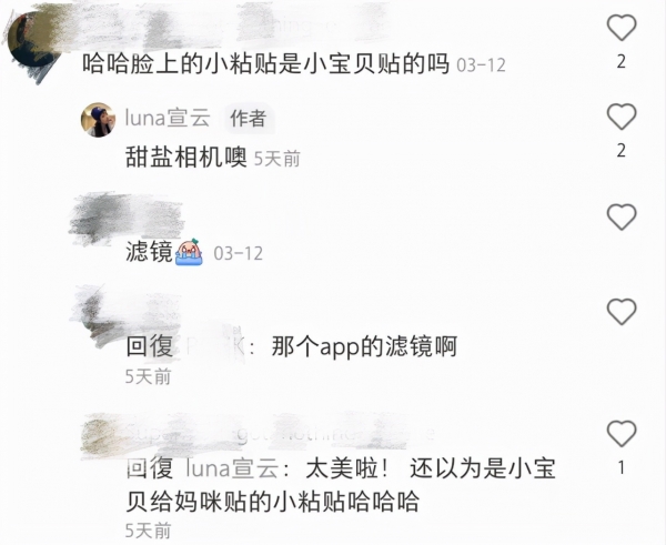 不过,那会儿有网友询问:"脸上的小粘贴是小宝贝贴的吗"时,宣云回复称是美颜相机自带的,宣云并没有否认网友口中的"宝宝",吸足眼球。