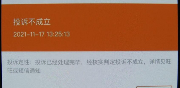 对于此次事件淘宝消费者热线客服表示,因核实不了情况周小姐的投诉不成立,但会记录到商家考核中。