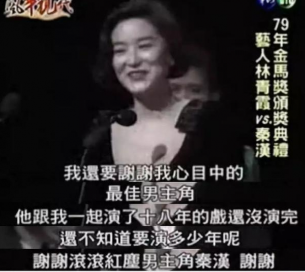 在那段时间,林青霞事业爱情双丰收,和秦汉合作的《滚滚红尘》获了奖,林青霞一脸甜蜜地在台上感谢秦汉,一切都那么美好。