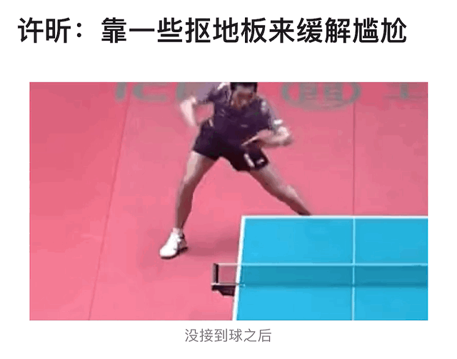 或者是在没接到球之后蹲在地上扣地板,简直又可爱又可怜,与国乒队的画风格格不入。