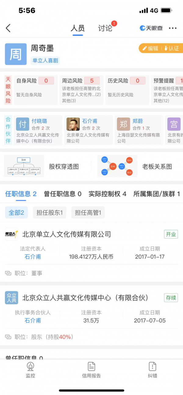 但据天眼查显示,周奇墨是单立人的董事,并不是笑果的。