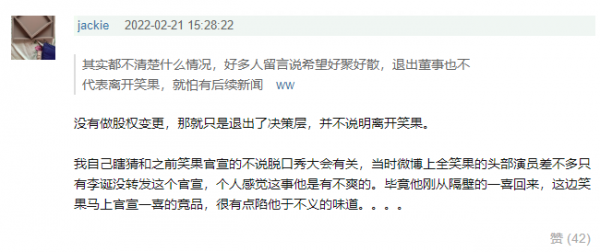 另一部分网友猜想,刚刚参加爱奇艺出品的《一年一度喜剧大赛》的李诞,可能是不满笑果在此时官宣推出第四季《脱口秀大会》才卸任董事,这抢肉吃的姿势有点难看。