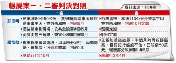 因为车祸事件,彭伟明先是被判6个月,后来二审刑期增加,变成了10个月。他的朋友也由一审的1年10个月,变成了2年4个月。