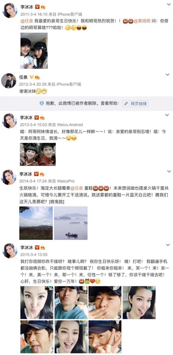 前几年李冰冰的文案还经常表现得很暧昧,甚至表白任泉“爱你一万年”,大概是因为年龄增长,必须表现得沉稳一些,所以后来的祝福语变得越来越官方。