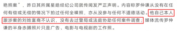 然而,罗仲谦却斩钉截铁地否认认识刘定成,还透过经纪公司发声明表示,没有去过警局或法庭协助案件调查。